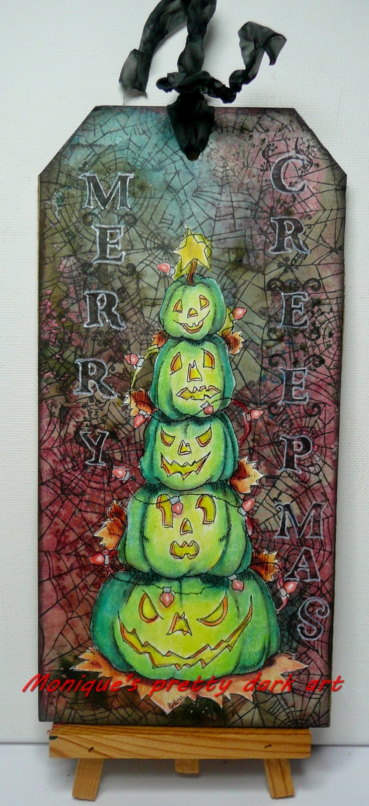 TodayI made a Tag using the Rick St.dennis image Creepmas pumpkins the background is made using Bister (you can get that at I Brake for Stamps or Stampinback and the Spiderweb stamp is by Lost Coast Designs